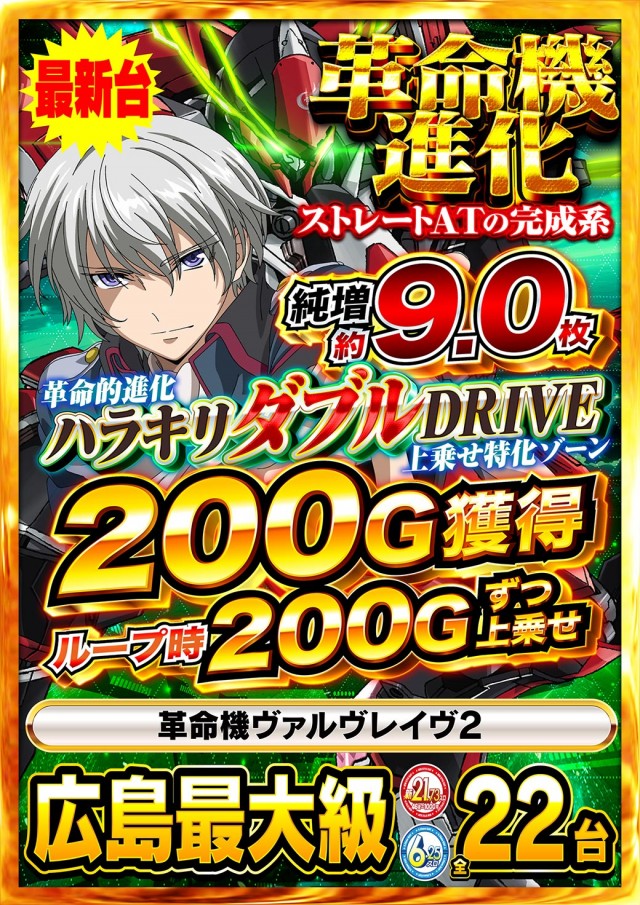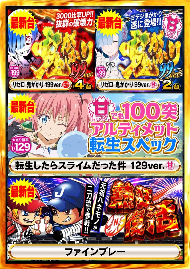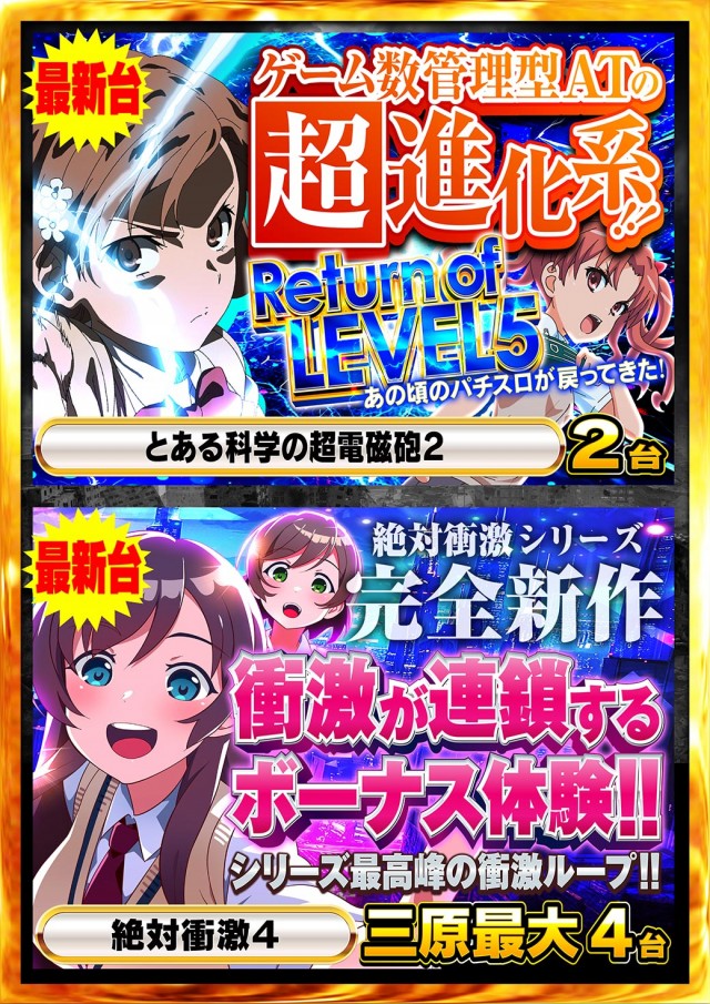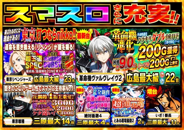 - 4パチ:252台 1.1パチ:180台 新20スロ537台 6.25スロ36台