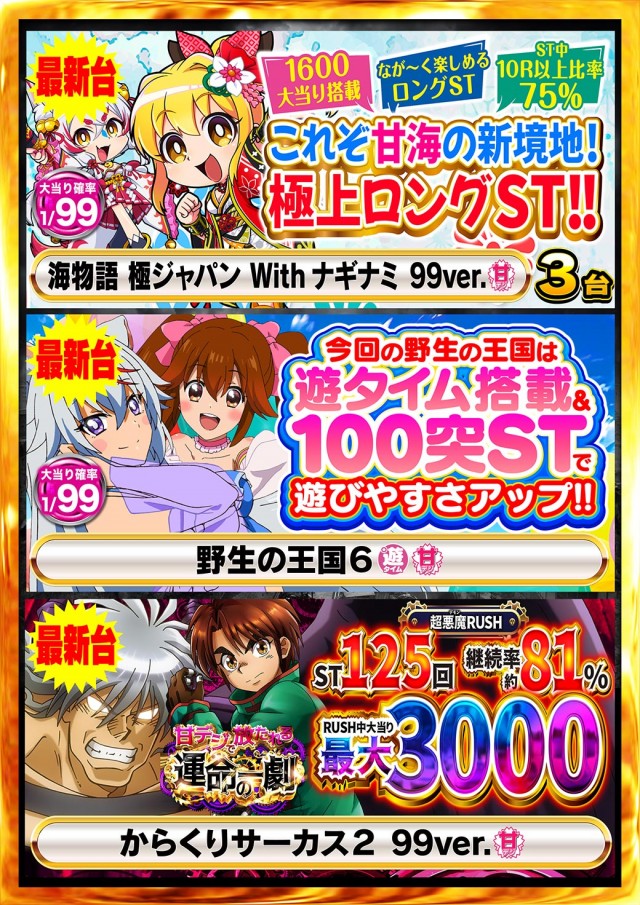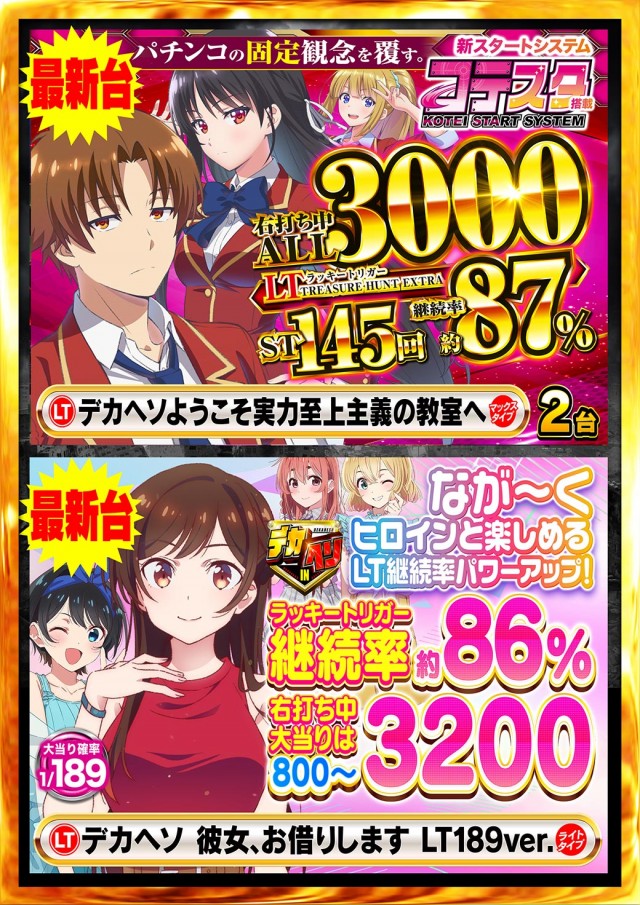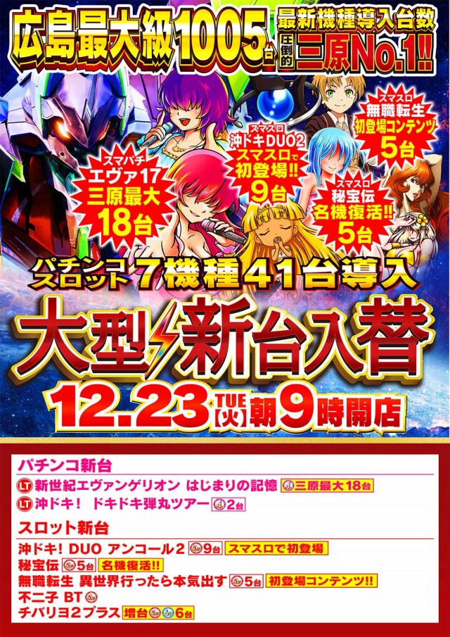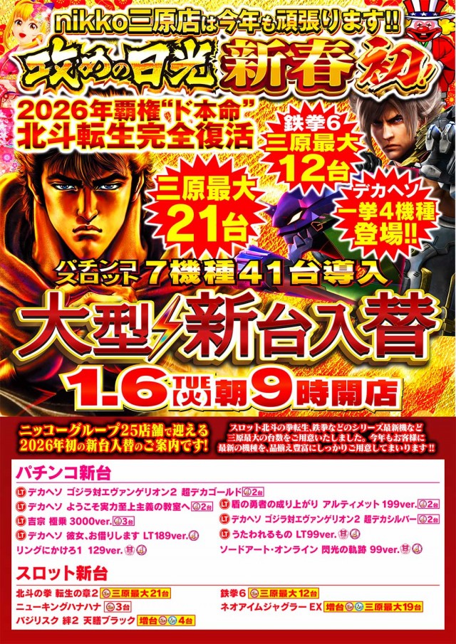 - 【年中無休】新台入替前日に準備の為、お休みを頂きます。