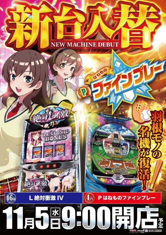 - [1]パチ:72台 [4]パチ:24台 [1000円/46枚]スロ:118台 [1000円/182枚]スロ:24台