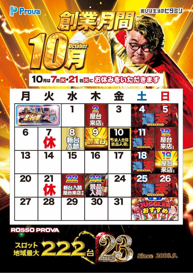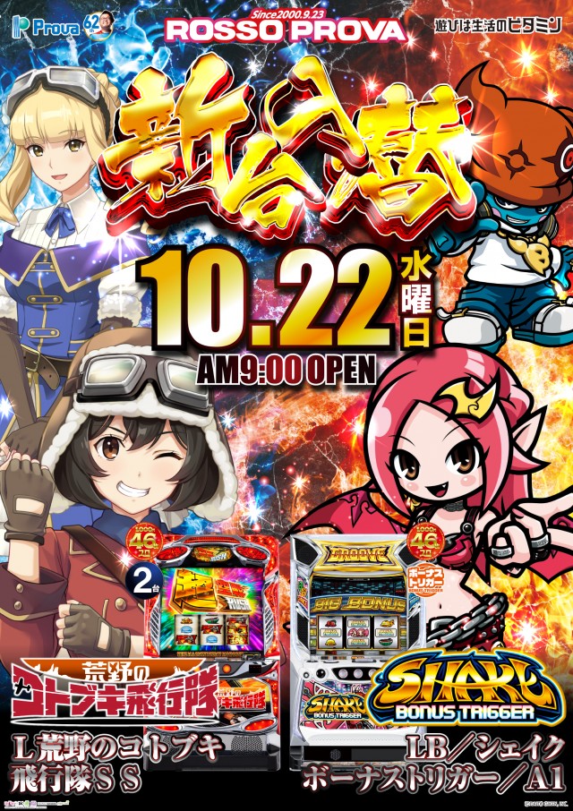 - 9:00~22:45 ※会員カード掲示で22:55まで延長遊技可能