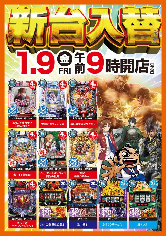 - [1.25]パチ:80台 [4]パチ:160台 [2.5]スロ:40台 [1000円/46枚]スロ:200台
