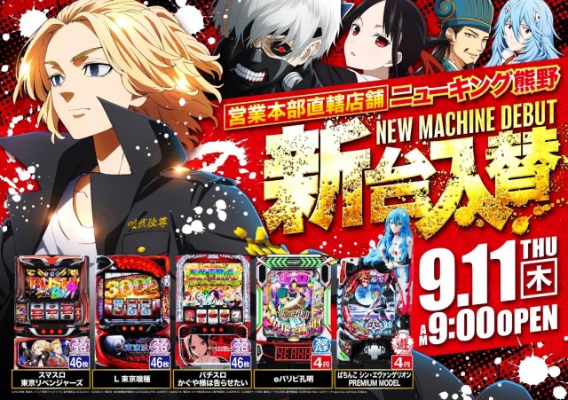 - パチンコ⇒4円、1円 パチスロ⇒1000円46枚,1000円182枚