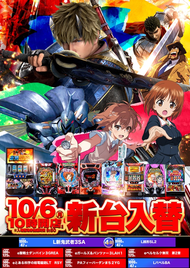 - 500円/125玉パチンコ、200円/167玉パチンコ、1000円/47枚スロット、1000円/167枚スロット