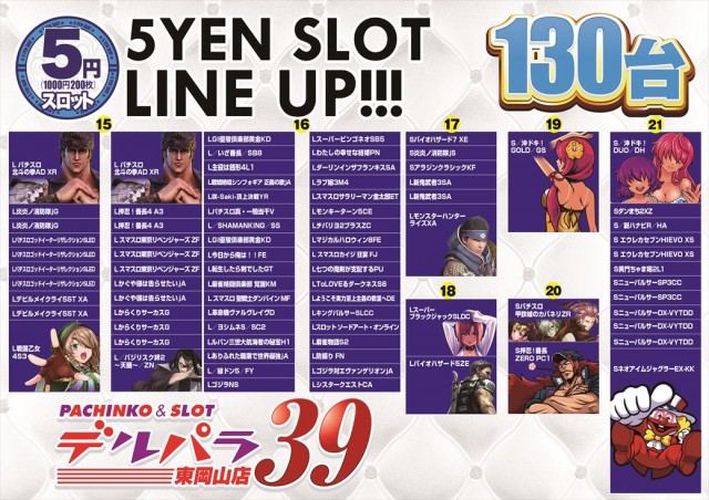 - [4]パチ:150台 [1]パチ:240台 [1000円/46枚]スロ:431台 [5]スロ:130台