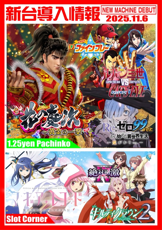 - [4]パチ:19台 [2.5]パチ:19台 [1.25]パチ:152台 [6.25]スロ:65台 [12.5]スロ:38台