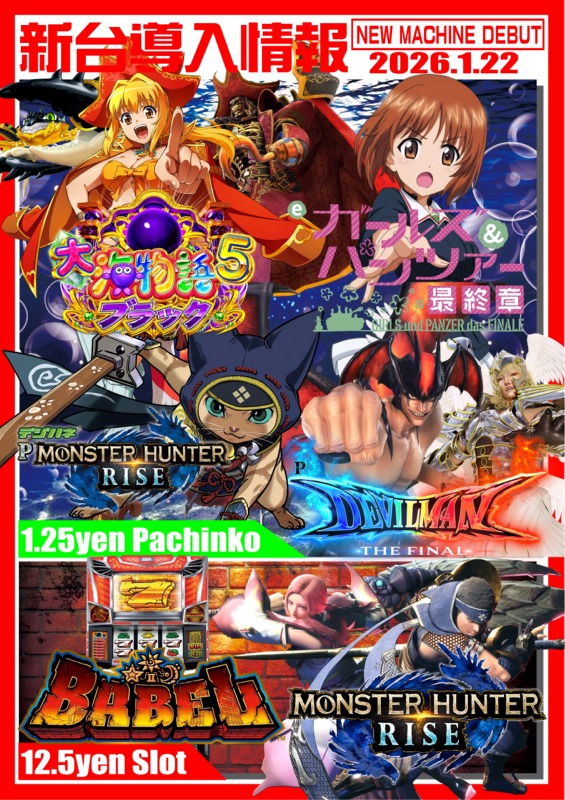 - [4]パチ:19台 [2.5]パチ:19台 [1.25]パチ:153台 [6.25]スロ:65台 [12.5]スロ:37台