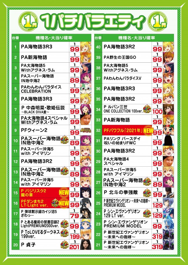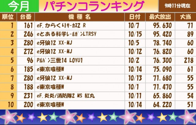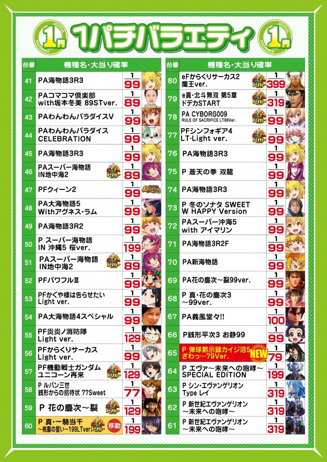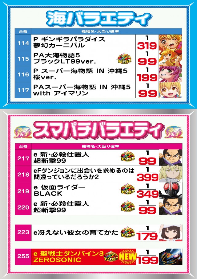 - [4]パチ:239台 [1]パチ:79台 [21.73]スロ:240台
