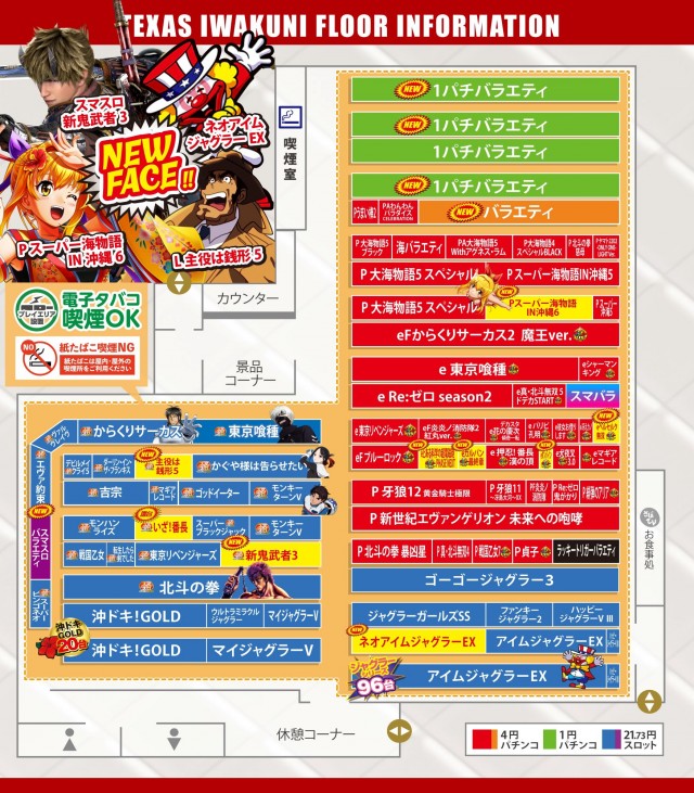 - 全館プラズマクラスター完備 パチンコ全320台各台計数器設置 パチンコ&スロット全台肘掛スタンド備付 全館LED照明