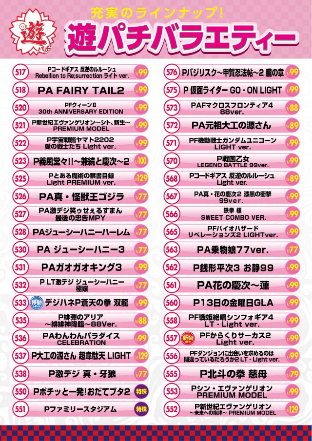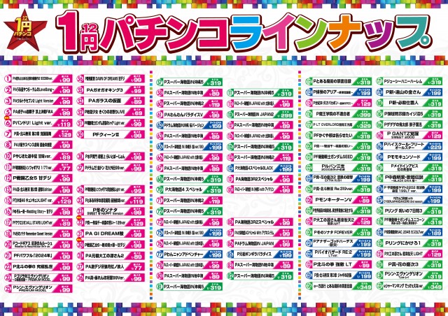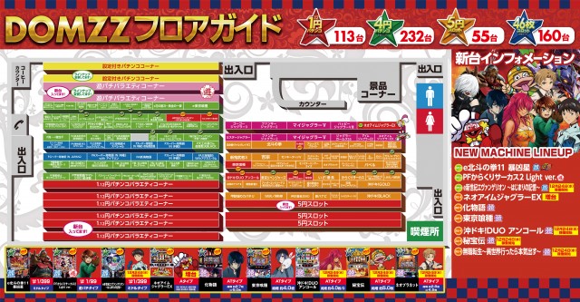- [4]パチ:232台 [1.12]パチ:113台 [1000円/46枚]スロ:160台 [5]スロ:55台