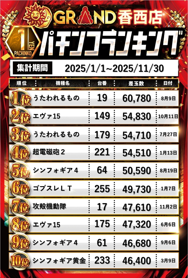 - 4円ぱちんこ/200台 1円ぱちんこ/160台 20円スロット/195台 5円スロット/ 40台 合計/595台