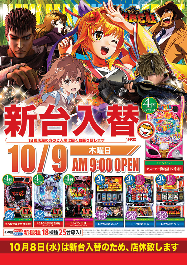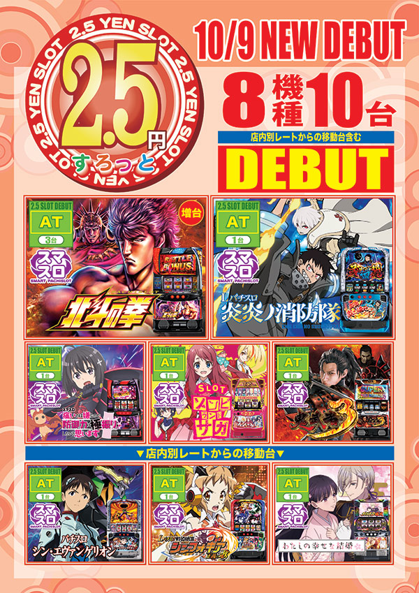 - [4]パチ:150台 [1]パチ:120台 [20]スロ:205台 [10]スロ:14台 [2.5]スロ:70台