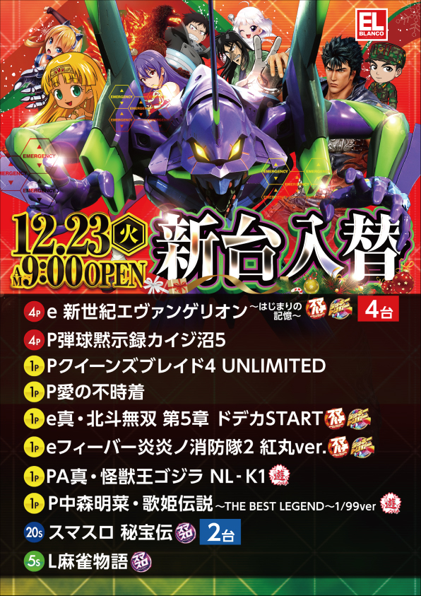 - パチンコ[4]500円/125玉 :196台[1]200円/178玉:140台 計336台 スロット[20]1000円/46枚:216台 [5]1000円/178枚:24台 計240台