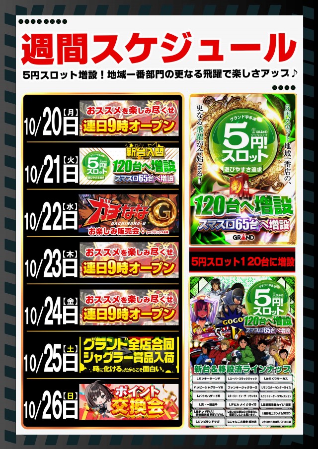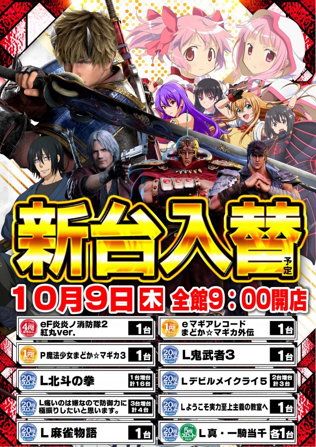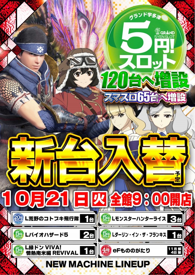 - 新台入替時にお休みを頂く場合があります。