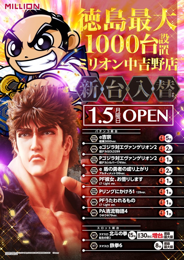 - LINE入場抽選を採用しております。8:00~8:40に立体駐車場1Fにて受付致します。まずは、ミリオン中吉野店のLINEおともだち登録をして、LINEメニューから顔写真登録をお願いします。ご不明点はお気軽にスタッフまでお問い合わせください。