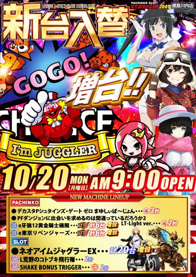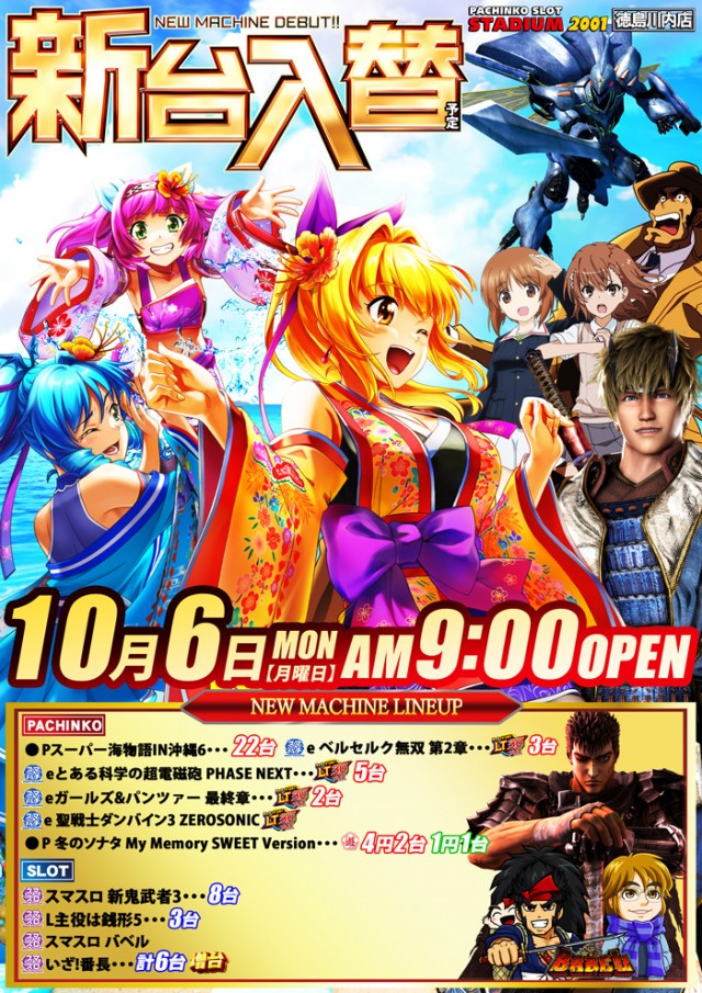 - 総台数824台 【パチンコ】432台 4円パチンコ…288台 1円パチンコ…144台 【スロット】392台 20円スロット…312台 5円スロット… 80台