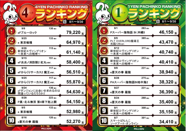 - [4]パチ:100台 [1]パチ:100台 [1000円/46枚]スロ:90台 [1000円/178枚]スロ:14台