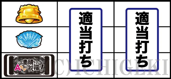 ナビ発生時 すべてナビに従う ナビ非発生時 通常時と同様小役狙い 演出発生時 通常時と同様小役狙い ナビ発生時の押し順ミスには気を付けよう。◆ナビ発生時