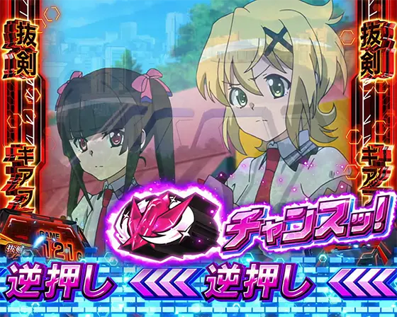 | ・状態中の左1stギアフラグ成立で“抜剣バースト”に突入 └ギアフラグ出現率超高確率状態+ギアフラグ成立で10Gを再セット!? |