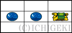 ・ラクダが通過したゲームの出目が、中段「リプレイ・リプレイ・ラクダ」(共通1枚役)