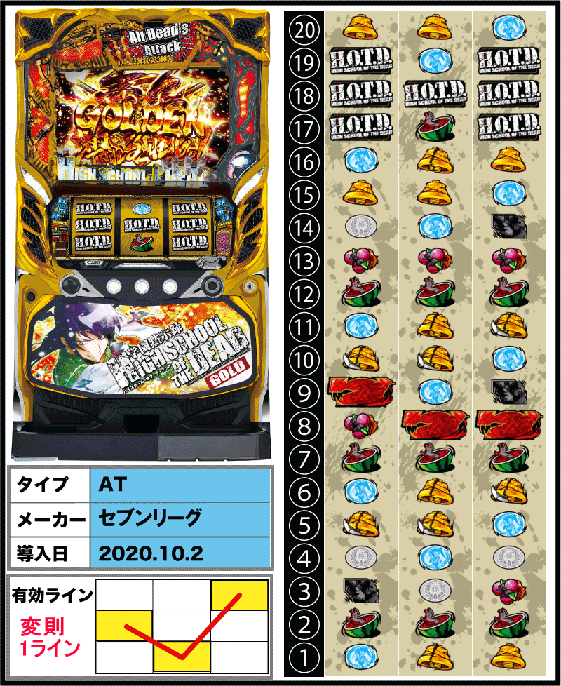 パチスロ学園黙示録ハイスクール・オブ・ザ・デッド ゴールド:【スロット新台】解析・スペック・打ち方・導入日・ゲーム性・天井まとめ