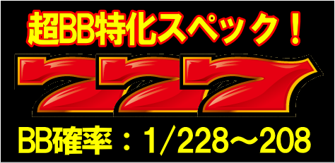 BIG BONUS比率に拘った超BB特化スペックが最大の特徴で、設定1でのBB確率が1/228・BB比率は約76%とノーマルタイプとしては最高水準を誇る。