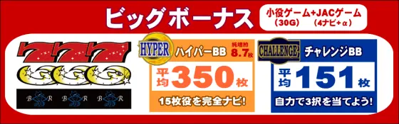 | ・ハイパーBB中:JACゲームのナビ+1 ・チャレンジBB中:小役ゲームのナビ+1 |