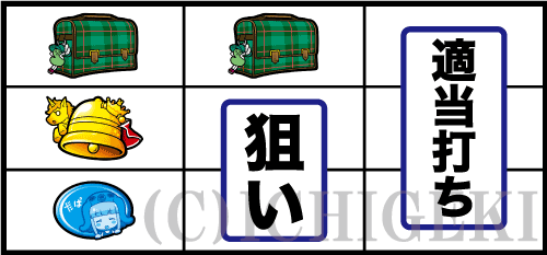 ▲カバン停止時は中リール「クルミ図柄」を目安にカバン狙い